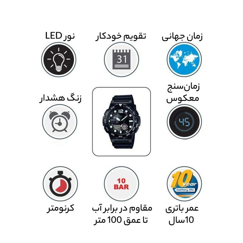 ساعت مچی عقربه ای مردانه کوارتز کرنوگراف کاسیو مدل AEQ-100W-1AVDF