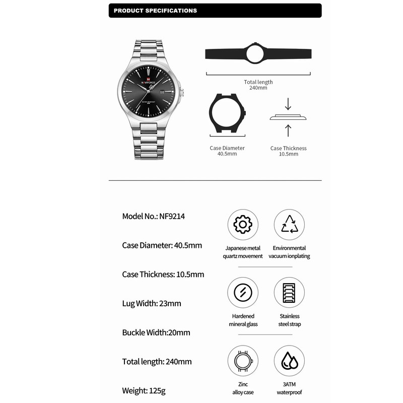 ساعت مچی عقربه‌ای مردانه نیوی فورس مدل NF9214SBK