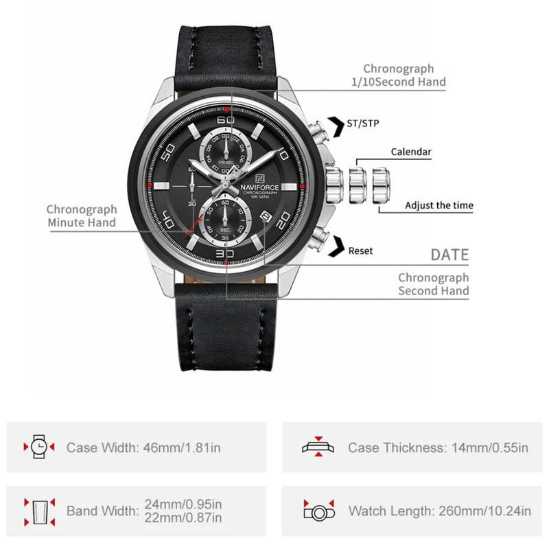 ساعت مچی عقربه‌ای کوارتز مردانه نیوی فورس مدل سه موتوره کد NF8075SB