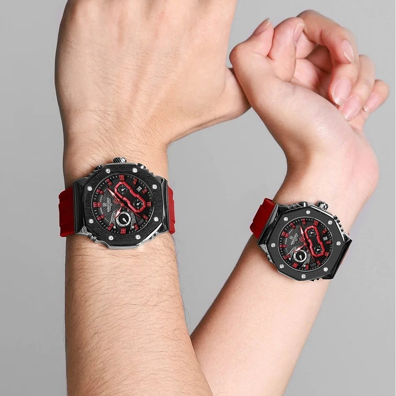 دستهبندی: ست ساعت زنانه و مردانهفرم صفحه: گردجنس شیشه: معدنیجنس بدنه: استیلرنگ صفحه: مشکیرنگ بند : قرمزنوع قفل بند : سگکی سادهجنس بند : سیلیکونقابلیتهای تخصصی ساعت : تاریخشمار , صفحه طرحدار , عقربههای شبتاب , کرنوگرافتکنولوژی ساخت : الکترونیکی (کوارتز)استایل کاربری : ورزشی , روزمره , لوکس , فشن , خلبانینمایش بیشتر