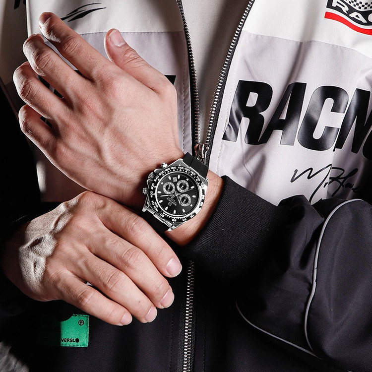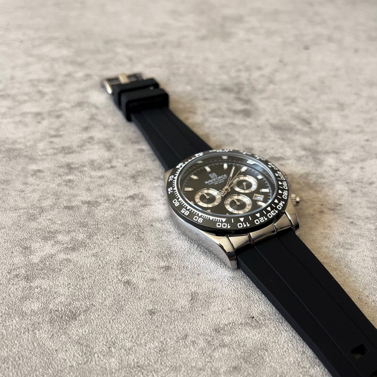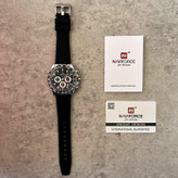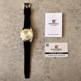 این مدل از ساعت مچی های مردانه برند نیوی فورس بر اساس سبک اسپرت و روزمره بوده و دارای طراحی بسیار زیبایی می باشد.شیشه ی معدنی ضد خش و بند رابر بسیار باکیفیت و بدنه ی این ساعت استیل رنگ ثابت بوده که از رنگهای مشکی و نقره ای در آن استفاده شده است و جزو ساعت های خوش فروش برند نیوی فورس است و جزو بهترین و مناسب ترین ایده ها برای کادوی مردانه در مناسبت های مختلف میباشد. طراحی متفاوت این ساعت چشم هر بیننده ای را مینوازد.همچنین این ساعت سه موتوره کرنوگراف بوده و عقربه های کوچک آن کرنومتر است و دارای نمایشگر روزهای ماه و وضعیت 24ساعته و عقره های شب تاب نیز میباشد. و دارای 30متر مقاومت در برابر آب است. همچنین روی قفل و روی سرکوک ساعت و روی عقربه ی ثانیه شمار و صفحه ی ساعت و پشت درب برند نیوی فورس حک شده است. و همانطور که مشاهده میکنید دارای هولوگرام پشت درب و دفترچه نیز میباشد. این ساعت مردانه نیوی فورس در جعبه ای باکیفیت و شیک و کادویی خدمت شما ارسال میگردد.