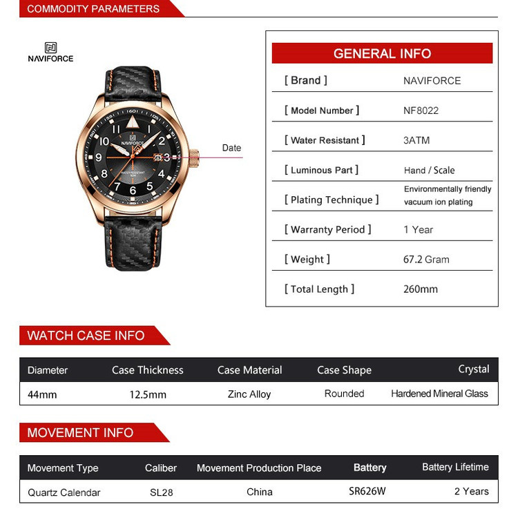 ساعت مچی عقربهای کوارتز مردانه نیوی فورس مدل NF8022RGB