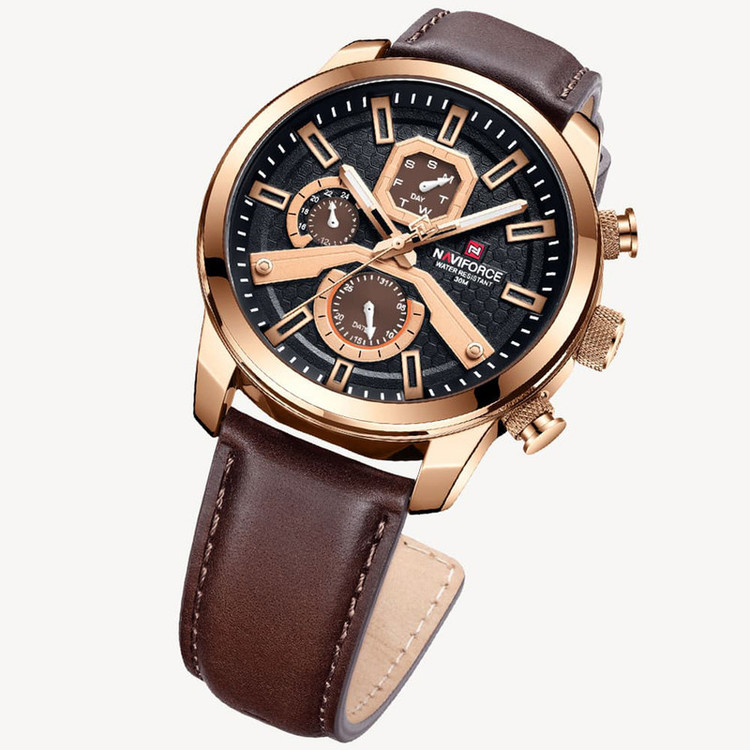 ساعت مچی مردانه نیوی فورس NAVIFORCE مدل nf9211 می باشد. کسانی که ساعت مچی اورجینال با قیمت مناسب و با دوام و کیفیت بالا می خواهند NAVIFORCE یک انتخاب عالی محسوب می شود. این ساعت با طراحی کلاسیک ، بند استیل میباشد. ساعت های نیوی فورس محصول اورجینال هستند که موتور کوارتز ساخت ژاپن با کیفیت عالی دارند. دارای بند چرم, با شیشه معدنی مقاوم در برابر خش که در این چند سال خیلی توانسته در دل مردم جا باز کند. ساعت های نیوی فورس ظاهر جذاب و اسپرتی دارند.