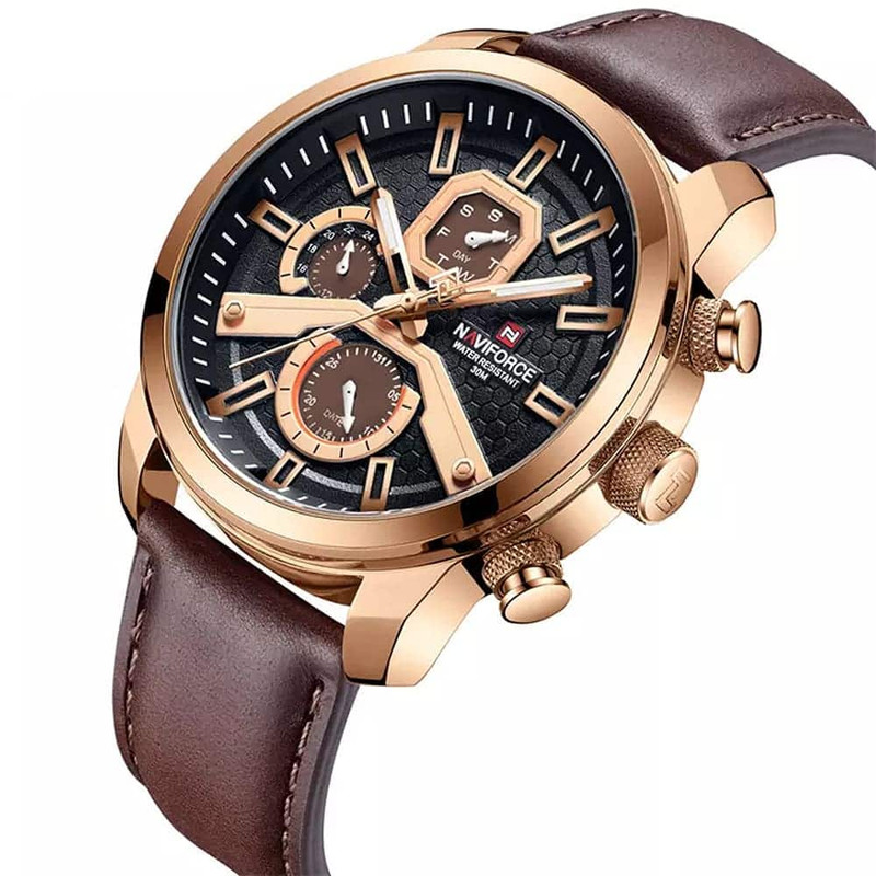 ساعت مچی مردانه نیوی فورس NAVIFORCE مدل nf9211 می باشد. کسانی که ساعت مچی اورجینال با قیمت مناسب و با دوام و کیفیت بالا می خواهند NAVIFORCE یک انتخاب عالی محسوب می شود. این ساعت با طراحی کلاسیک ، بند استیل میباشد. ساعت های نیوی فورس محصول اورجینال هستند که موتور کوارتز ساخت ژاپن با کیفیت عالی دارند. دارای بند چرم, با شیشه معدنی مقاوم در برابر خش که در این چند سال خیلی توانسته در دل مردم جا باز کند. ساعت های نیوی فورس ظاهر جذاب و اسپرتی دارند.