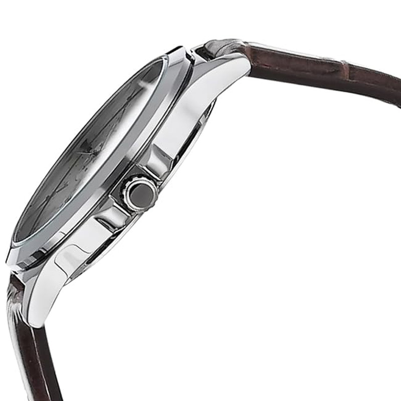 دستهبندی: ساعت عقربه ای مردانهرنگ صفحه: نقرهایجنس شیشه: معدنیفرم صفحه: گردجنس بدنه: فلزرنگ بدنه : نقرهایجنس بند : چرمنوع قفل بند : سگکی سادهاستایل کاربری : کلاسیک , رسمینوع موتور ساعت : کوارتزقطر صفحه ساعت : 41.5 میلیمترسایر توضیحات : - دارای موتور کوارتز ژاپنینوع ساعت عقربه ای مردانه : ساعت مچینمایش بیشتر