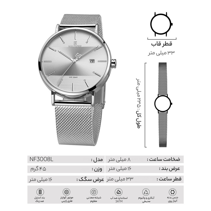 دستهبندی: ساعت عقربه ای زنانهاستایل کاربری: لوکس , کلاسیکجنس بدنه: استیلفرم صفحه: گردجنس شیشه: معدنیرنگ صفحه : سفید نقرهایرنگ بدنه : نقرهایجنس بند : استیلضخامت بدنه : 8 میلیمترنوع قفل بند : کلیپسی سادهقابلیتهای تخصصی ساعت : تاریخشمارقطر صفحه ساعت : 33 میلی مترنوع ساعت عقربهای زنانه : ساعت مچینمایش بیشتر