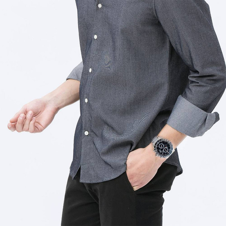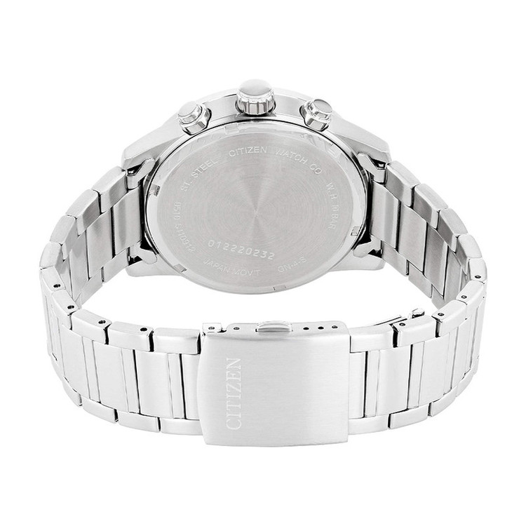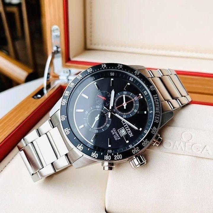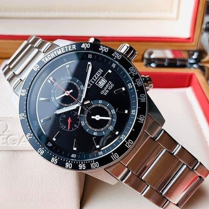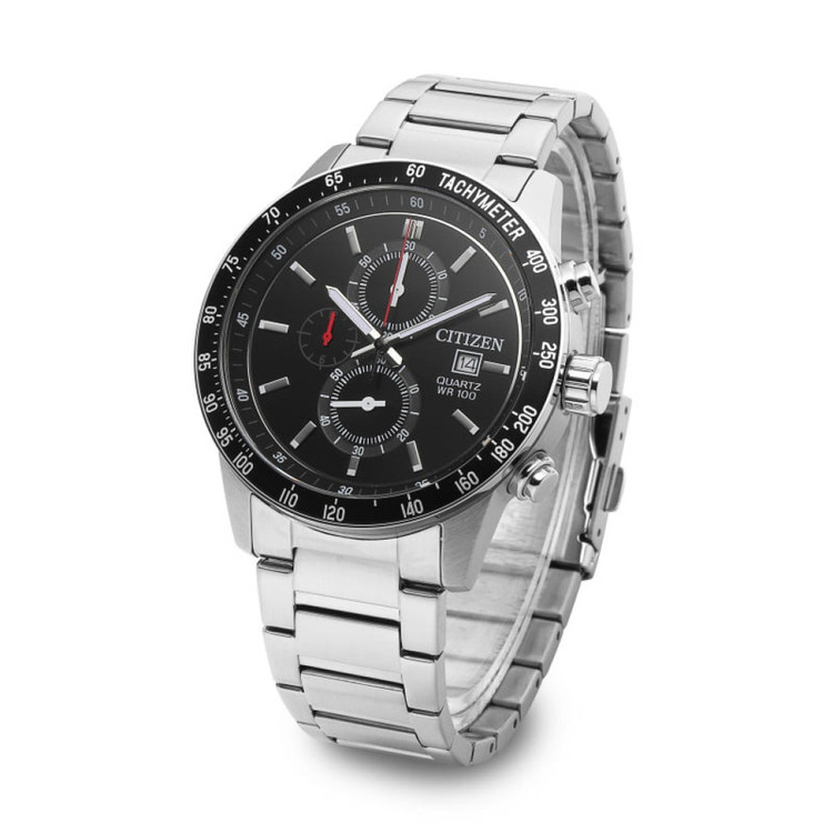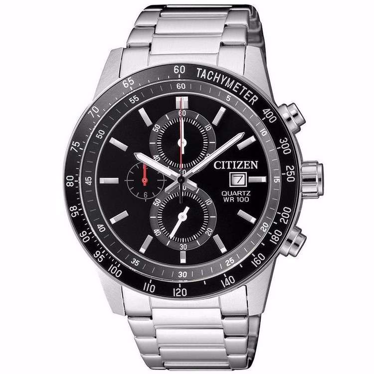 این مدل از ساعت مچی های برند سیتیزن دارای بند و بدنه استیل با ترکیب دو رنگ مشکی و نقره ای بوده و با صفحه مشکی خود صاحب ابهت و جذابیت بی نظیری شده است. این ساعت برند سیتیزن کرنوگراف بوده و عقربه های کوچک آن کرنومتر هستند و همچنین دارای نمایشگر روزهای ماه نیز می باشد. این طرح از ساعت های سیتیزن جزو پرفروش ترین ساعت های ژاپنی دنیا به شمار می رود. اعداد دور صفحه ی این طرح از ساعت سیتیزن تاچیمتر هستند و سرعت و شتاب را در فاصله ی یک کیلومتری نمایش میدهند.