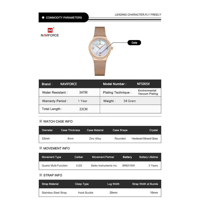 ساعت مچی عقربه ای زنانه نیوی فورس مدل NF5005 rgw