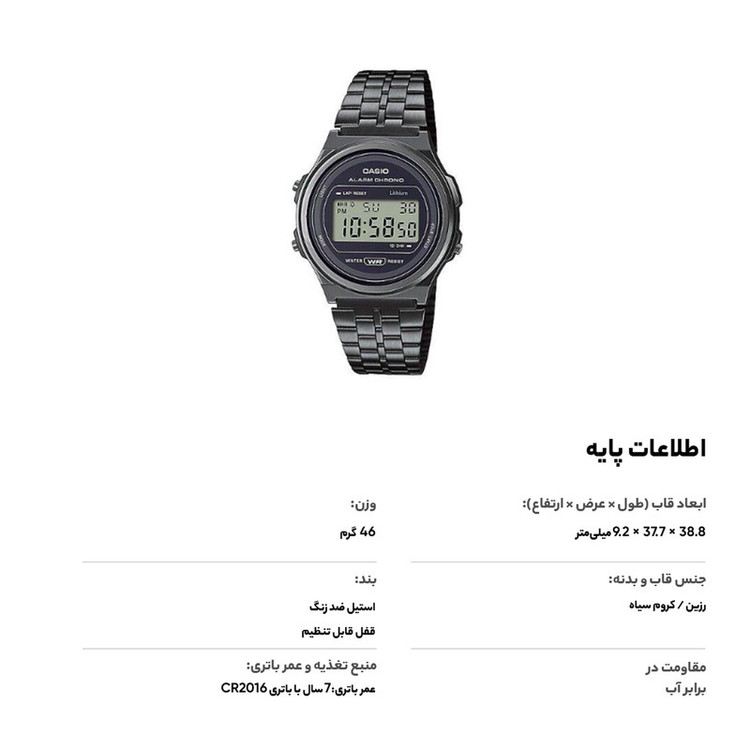 ساعت مچی دیجیتال کاسیو مدل A171WEGG-1ADF