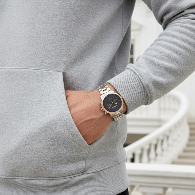 این ساعت به موتور دقیق و قابل اعتماد ژاپنی مجهز است که عملکردی پایدار و دقیق را تضمین میکند. استفاده از شیشه سافایر کریستال مقاوم در برابر خط و خش و بدنهای مستحکم، ارزش استفاده طولانیمدت از این محصول را افزایش میدهد. قابلیت نمایش تاریخ و کرنوگراف حرفهای نیز امکاناتی کاربردی را برای مدیریت زمان در اختیار کاربر قرار میدهند.
