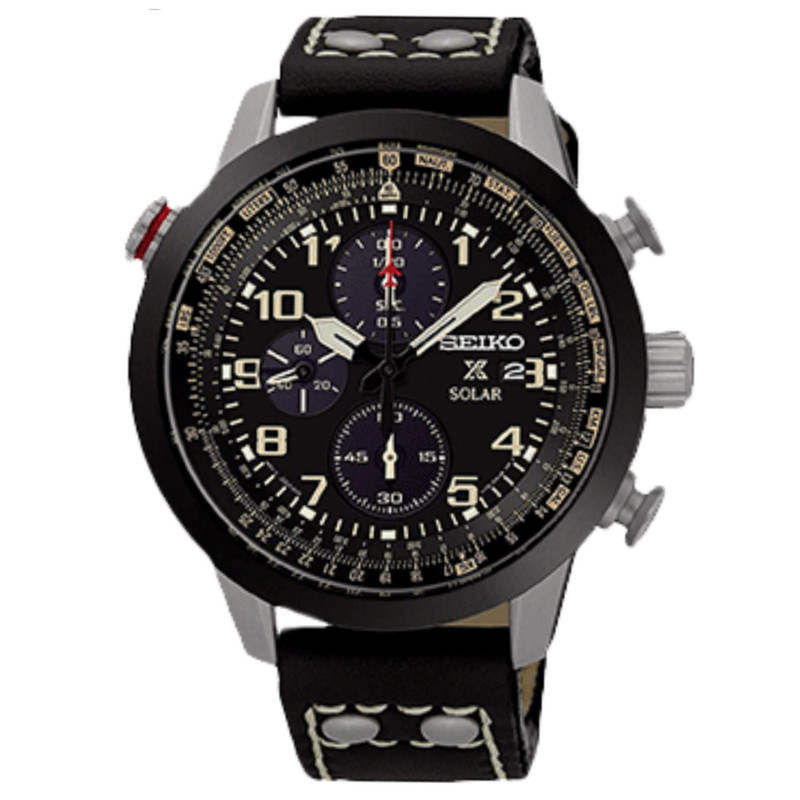 SSC423 یکی از محبوبترین مدلهای سیکو پراسپکس است که به صورت اختصاصی برای خلبانان و هوانوردان حرفهای طراحی و توسعه یافته است. مهمترین ویژگی این مدل، زه آویاتور نصب شده روی قاب ساعت است، این زه به خلبان اجازه انجام محاسبات پیچیده مثلثاتی جهت دستیابی به پارامترهای حیاتی پرواز نظیر مسافت، سرعت و نرخ مصرف سوخت لحظهای را میدهد؛ تمامی این محاسبات پیچیده، به سادگی و از طریق چرخاندن فیزیکی زه آویاتور انجام میشود. پراسپکس جزو کلکسیونهای الیت کمپانی سیکو محسوب میشود و طبعا تنها برترین مواد اولیه شایستگی حضور در قالب یک ساعت سیکو پراسپکس را دارند؛ استنلس استیل 316L، کریستال مقاوم هاردلکس، گسکتهای کالاهان و از همه مهمتر قلب تپندهای از جنس سیکو. SSC423 از یک موتور قدرتمند ژاپنی، ساخت کمپانی سیکو-اپسون بهره میبرد و قابلیتهایی نظیر نمایش تاریخ و زمانسنج را در اختیار کاربر قرار میدهد، در راستای سیاستهای زیستمحیطی کمپانی سیکو در زمینه استفاده از انرژیهای پاک، SSC423 به قابلیت شارژ نوری مجهز شده است. بدنه SSC423 از استنلس استیل 316L ساخته شده است، آبکاری جزیی بدنه ساعت به رنگ مشکی در هارمونی با بند چرم کالفاِسکین سیاه رنگ، زیبایی خاصی به سیکو پراسپکس بخشیده، طراحی هوشمندانه عقربه ثانیهشمار کرونوگراف به شکل هواپیما، زیبایی خیرهکننده SSC423 را تکمیل کرده است.