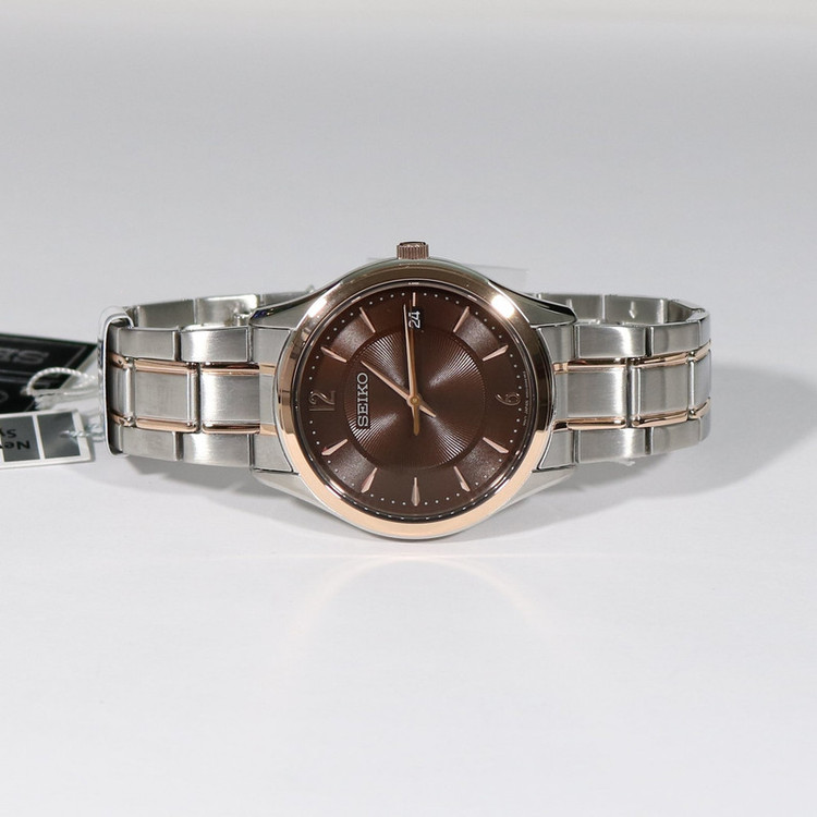 این طرح از برند ساعت سیکو با طراحی و رنگ خاص خود برای تیپهای مجلسی بسیار مناسب میباشد. بند و بدنه ی این ساعت سیکو از جنس استیل است که از ترکیب رنگ های نقره ای و رزگلد و قهوه ای در آن استفاده شده است. از ویژگیهای منحصر به فرد این ساعت میتوان به طراحی بسیار شیک و مجلسی ساعت اشاره کرد. این ساعت دارای نمایشگر روزهای ماه بوده و مقاومت آن در برابر آب 100 متر است.