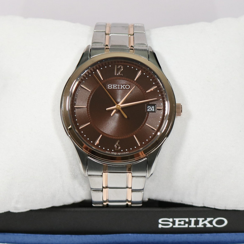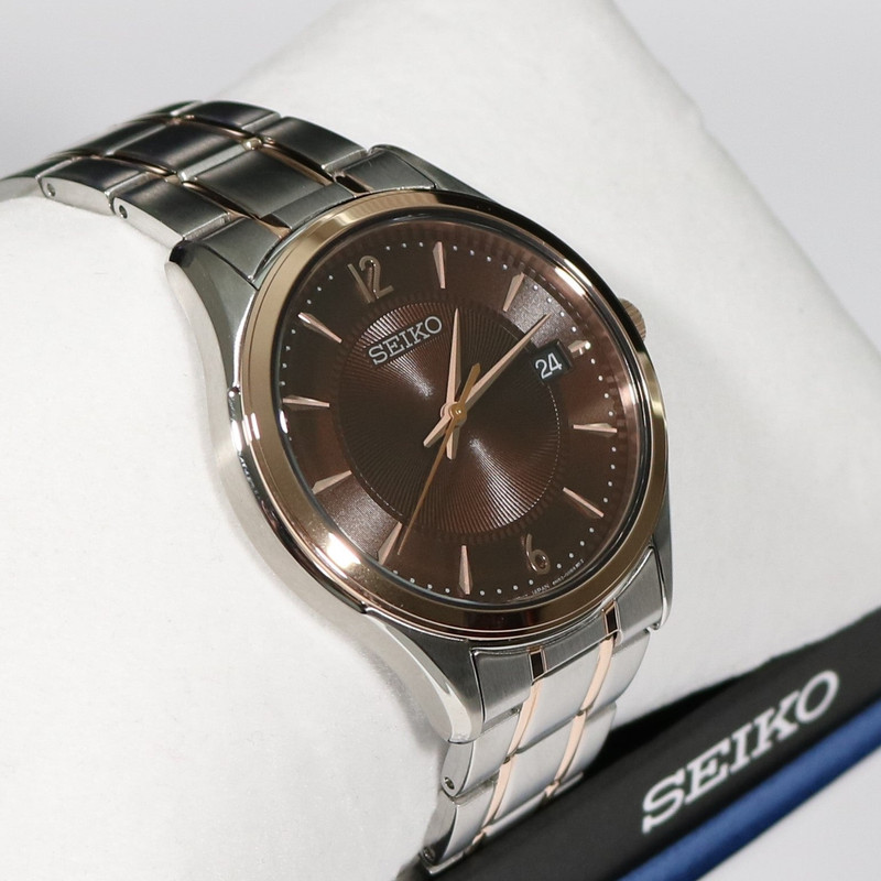این طرح از برند ساعت سیکو با طراحی و رنگ خاص خود برای تیپهای مجلسی بسیار مناسب میباشد. بند و بدنه ی این ساعت سیکو از جنس استیل است که از ترکیب رنگ های نقره ای و رزگلد و قهوه ای در آن استفاده شده است. از ویژگیهای منحصر به فرد این ساعت میتوان به طراحی بسیار شیک و مجلسی ساعت اشاره کرد. این ساعت دارای نمایشگر روزهای ماه بوده و مقاومت آن در برابر آب 100 متر است.