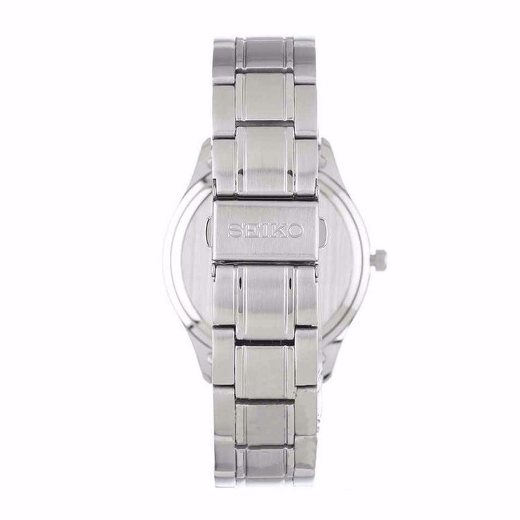 این طرح از برند ساعت سیکو ست بوده و با طراحی و رنگ خاص خود برای تیپهای مجلسی بسیار مناسب میباشد. بند و بدنه ی این ساعت سیکو از جنس استیل است که از ترکیب رنگ های نقره ای و سرمه ای در آن استفاده شده است. از ویژگیهای منحصر به فرد این ساعت میتوان به طراحی بسیار شیک و مجلسی ساعت اشاره کرد. این ساعت دارای نمایشگر روزهای ماه نیز میباشد.