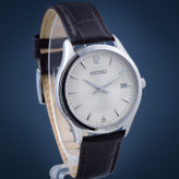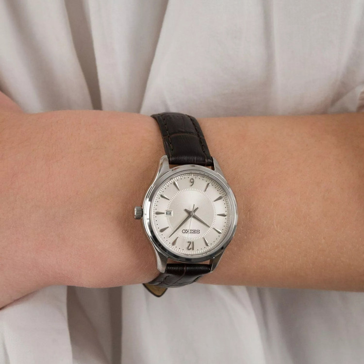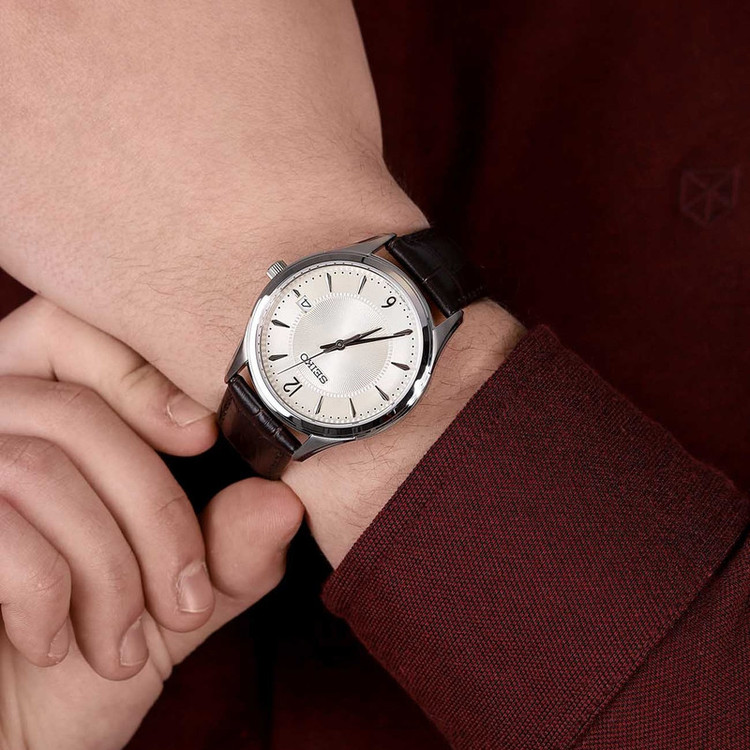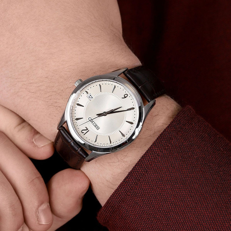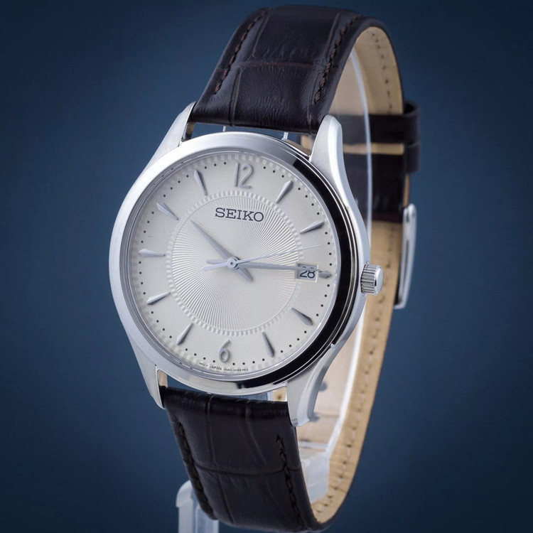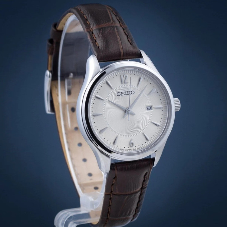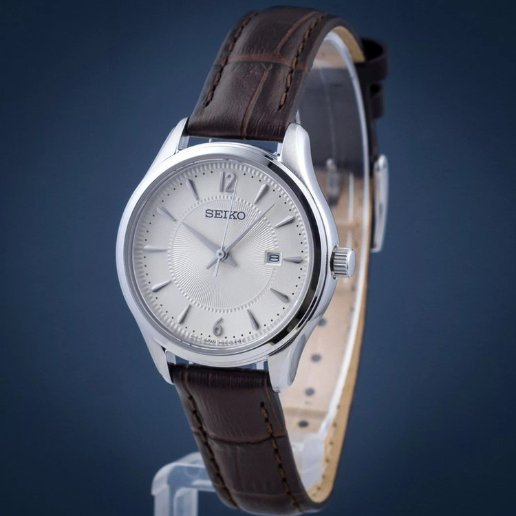 این طرح از برند سیکو ست چرمی میباشد و از مجلسی ترین و جذاب ترین مدلهای این برند پر سابقه و محبوب است. این ست زنانه و مردانه کاملا مجلسی و لوکس میباشد و به راحتی میتوان آن را با اکسسوری های چرم دیگر ست نمود و همچنین برای استفاده ی روزمره نیز بسیار مناسب است. جنس بدنه ی این ساعت استیل 318L است که بهترین و با کیفیت ترین نوع استیل است و کاملا رنگ ثابت میباشد و رنگ بدنه ی این ساعتها هم نقره ای میباشد. بند این ساعت ها هم چرم طبیعی بوده و بسیار مقاوم است و رنگ آن نیز قهوه ای میباشد.شیشه ی این ساعتها هم از جنس ساپفایر یا یاقوت بوده و کاملا ضد خش میباشد و همچنین این ساعتها دارای نمایشگر روزهای ماه نیز میباشد.