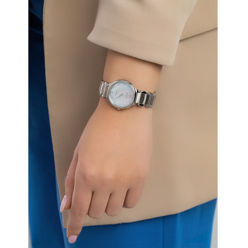 این طرح از ساعت مچی های زنانه برند سیتیزن از طرح های کلاسیک و مجلسی این برند می باشد و از طراحی خاص و منحصر به فردی برخوردار بوده و دارای بند و بدنه استیل با رنگ نقره ای می باشد. این مدل از ساعت مچی های زنانه سیتی زن اکودرایو بوده و قابلیت شارژ با روشنایی و نور را دارند. طراحی های کمپانی سیتیزن منحصر به فرد میباشند این مدل هم ساعت بسیار شیک و ساده میباشد و در عین سادگی با تک رنگ بودن توجه بسیاری جلب میکند. میتواند کادوی مناسبی برای تولد، روز زن، روز دختر و ولنتاین باشد. همچنین این ساعت قابلیت ذخیره شارژ باطری تا 6ماه را دارد.