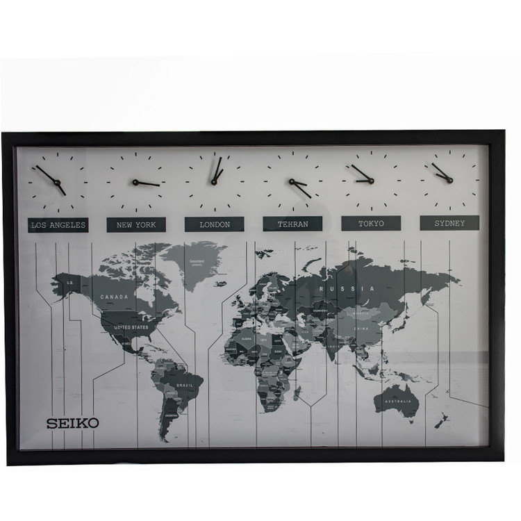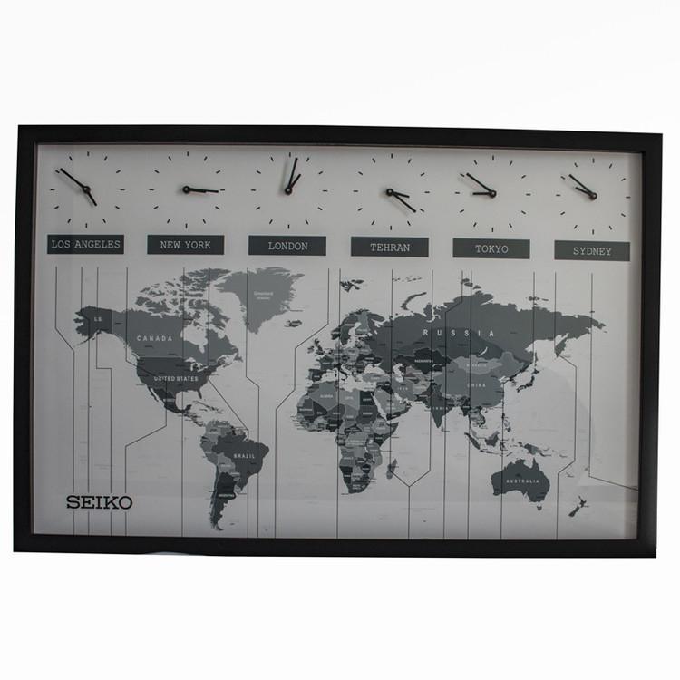 ساعت دیواری طرح سیکو مدل 1401 نشان دهنده تایم همزمان 5 شهر از کشورهای مختلف(سیدنی-تهران- توکیو-لندن-نیویورک-لوس آنجلس) از بهترین جنس ساعت وچوب دارای دورنگ مشکی وقهوه ای با امکان تغییر در شهر به سلیقه مشتری