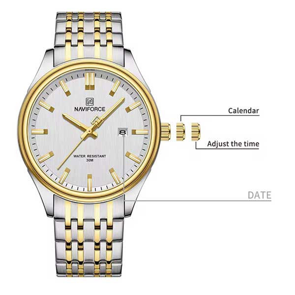 دستهبندی: ساعت عقربه ای مردانهنوع ساعت عقربهای مردانه: ساعت مچیفرم صفحه: گردجنس بند: استیلجنس شیشه: هاردلکسنوع قفل بند : ضامن دار (کلیپسی)نوع موتور ساعت : کوارتزقطر صفحه ساعت : 41 میلیمترجنس بدنه : استیلاستایل کاربری : لوکس , رسمی , کلاسیکرنگ بدنه : رزگلدنمایش بیشتر